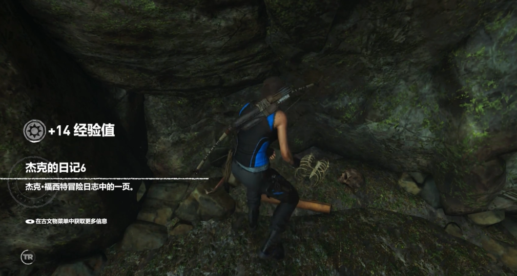 接下来重点说说容易漏掉的杰克的日记系列文献。其中一份藏在积水潭的卷筒里,需要从拱洞右侧高台跳下去才能发现;另一份在墓穴三岔路口滑落后的石室附近,沿着坍塌的石板往下走就能看到。如果想找福西特的最后信件,得攀爬悬崖进入密洞,尽头左侧地上放着它。这些地方光线较暗,建议打开生存本能高亮显示可互动物品。