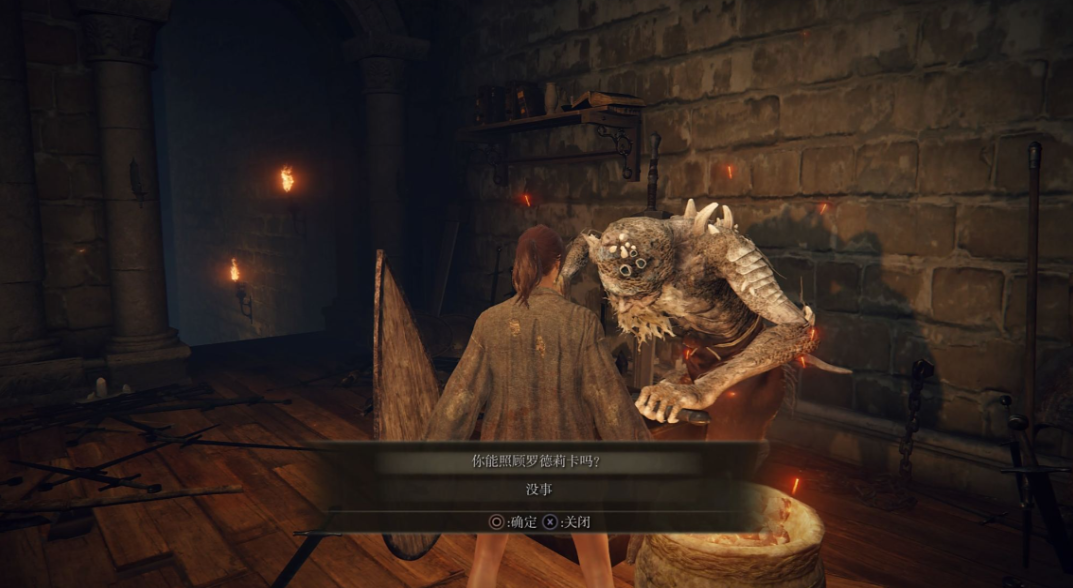 第二阶段围绕铁匠修古与罗德莉卡的互动展开。在圆桌厅堂与修古对话选择关于罗德莉卡,得知她具备调灵潜质后,需向罗德莉卡转达铁匠的评价。随后返回修古处确认其愿意指导罗德莉卡,刷新地图后她会坐在铁匠对面成为调灵师,提供骨灰强化服务。若此前未交付蛹群的遗物,仍可在破屋拾取黄金种子。返回史东薇尔城的遗物房间可额外获得罗德莉卡的暗红风帽,完成支线的前置闭环。
