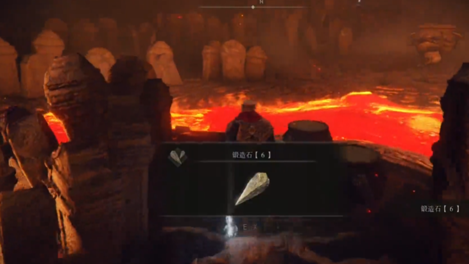对于尚未到达巨人山顶区域的玩家,可以通过探索特定地点临时获取6级锻造石。在格密尔火山的第1休息站,传送到赐福点后向左转穿过墓地,尽头处能看到一只狼守护着主人的尸体,附近就有一块6级锻造石。击败第9休息站山顶的坠星成兽BOSS后,也能获得1块失色锻造石6和5块普通6级锻造石。