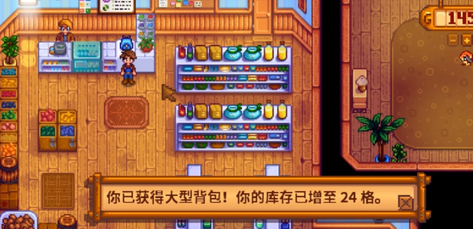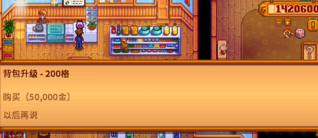 杂货店老板皮埃尔有时会外出参加节日活动,所以升级前最好确认他在店里。升级过程中没有其他隐藏条件,只要金币足够就能直接购买。背包满级后,红色背包图标会从柜台消失,这时候就没办法继续扩容了。建议优先升级背包,这样能更高效地收集资源,不用频繁回家清空物品栏。