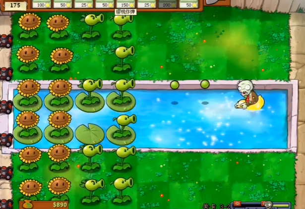 中期要注意搭配不同类型的植物,光靠豌豆射手可不够。防御型的坚果墙可以放在前排扛伤害,给后排输出争取时间;寒冰射手能减速僵尸,让其他植物多打几下;樱桃炸弹留着救急,等僵尸扎堆时一次性炸飞。别忘了水池关卡要种荷叶,不然植物没法放水里。这时候阳光应该比较充足了,可以开始升级阵容,比如换成双发射手或者西瓜投手,输出会更猛。