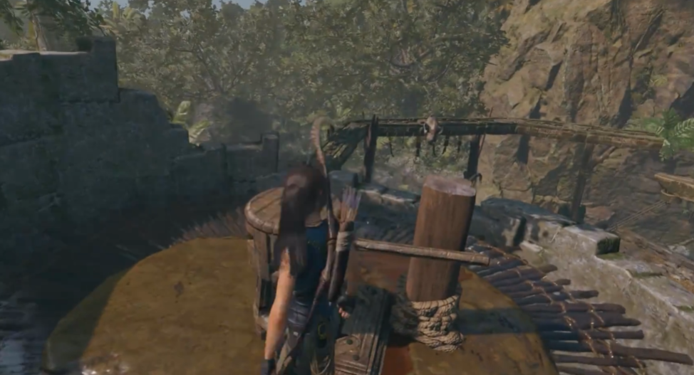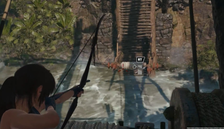 水位调整好后,马上跳到下层,用绳索箭矢连接吊桥和对岸的固定点。瞄准时找那些有明显绳索线圈的位置,射箭后会自动形成索道。如果第一次没对准别慌,多试几次熟悉角度。有些吊桥需要连接多个绳索点才能完全升起。