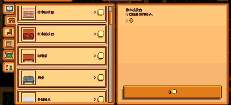 如果想省事,后期可以购买家具目录。家具目录在罗宾的木匠店有售,价格较高,但购买后可以无限次免费获取所有家具,包括各种床铺。这对于喜欢频繁更换家具风格的人来说非常方便,不用再担心资金问题。不过前期资金紧张时,还是建议直接购买单张床,等经济宽裕后再考虑家具目录。