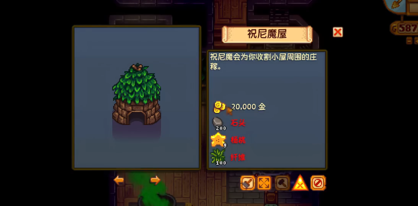 魔法建筑中最实用的是祝尼魔小屋,它能自动收获范围内的作物。解锁后点击巫师塔的魔法书第一页,消耗材料即可建造。祝尼魔小屋需要杨桃、石头和纤维,杨桃可通过种植获得,石头和纤维则通过采矿或清理野草收集。魔法系统还包含其他功能,比如传送图腾和黄金时钟。传送图腾能快速抵达特定地点,黄金时钟则能防止农场物品腐烂。这些都需要在魔法书中解锁并消耗相应资源。